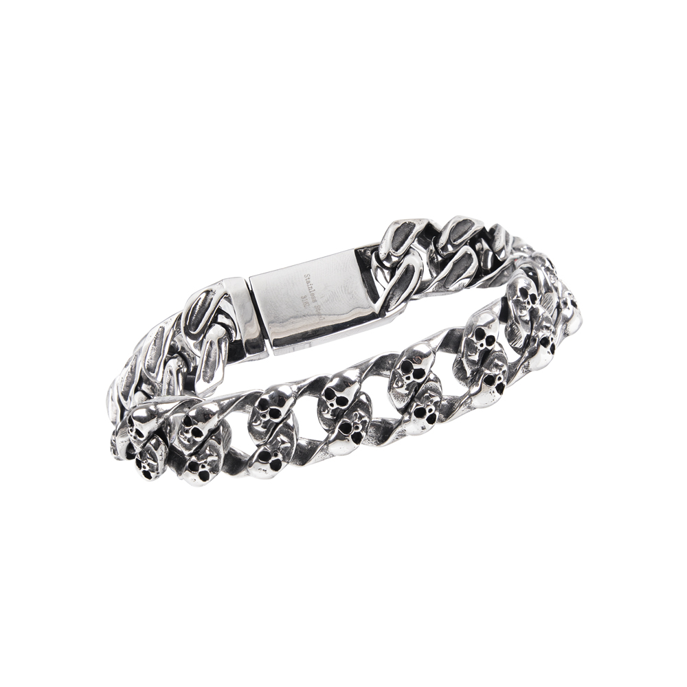 Don’t be afraid to show your true self! Thanks to the Steel Bracelet W-TEC Osaria, everyone will know who they’re dealing with. Consisting of intertwined skulls, this fine chain will stand out with leather clothes worn by bikers and dark colors worn by gothic metal enthusiasts. Polished stainless steel contrasts with patina, creating stylish ornamentation on both sides of the bracelet. Moreover, it is extremely easy to put on as it features click closure. This fine bracelet is a stylish accessory that goes with every outfit.