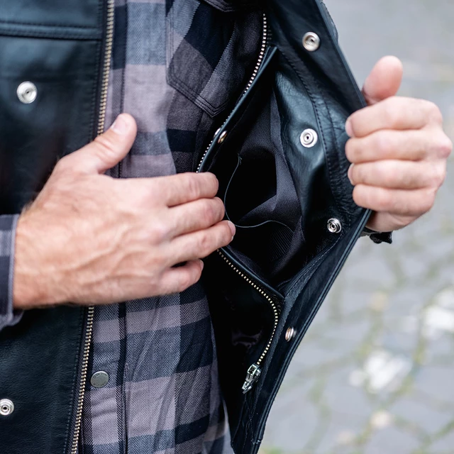 The Leather Motorcycle Vest W-TEC Delasola is a stylish piece of motorcycle clothing made of premium cowhide. Primarily suitable for choppers, the vest is also suitable for other motorcycles or even everyday use –whenever you feel like wearing it, and let it shine. It’s not an extravagant piece, though, but rather an elegant and minimalistic one. That’s why it offers plenty of room for your own patches.