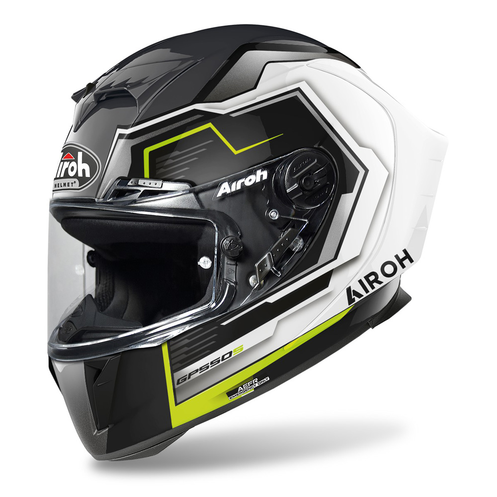 The Motorcycle Helmet Airoh GP 550S Rush Glossy White/Yellow 2022 redefines the level of performance on the road and on tracks. Designed in the wind tunnel, tested by Airoh’s riders and refined by Airoh’s know-how, the GP 550S stands at the top of the racing segment, without losing sight of the comfort and practicality features for an intensive use. The innovative rear spoilers create a displacing effect at high speeds while the internally channeled structure provides an effective air extraction. Then there’s the solid and lightweight shell made of HPC (High Performance Composite), the type-approved 2D racing visor with quick release, the 8 air vents to ensure optimal ventilation, the included Pinlock® lens, tear-off compatibility, the Stop-Wind and the A.E.F.R. (Airoh Emergency Fast Release) system for the quick removal of the cheek pads in case of emergency, all of which complements this state-of-the-art product.