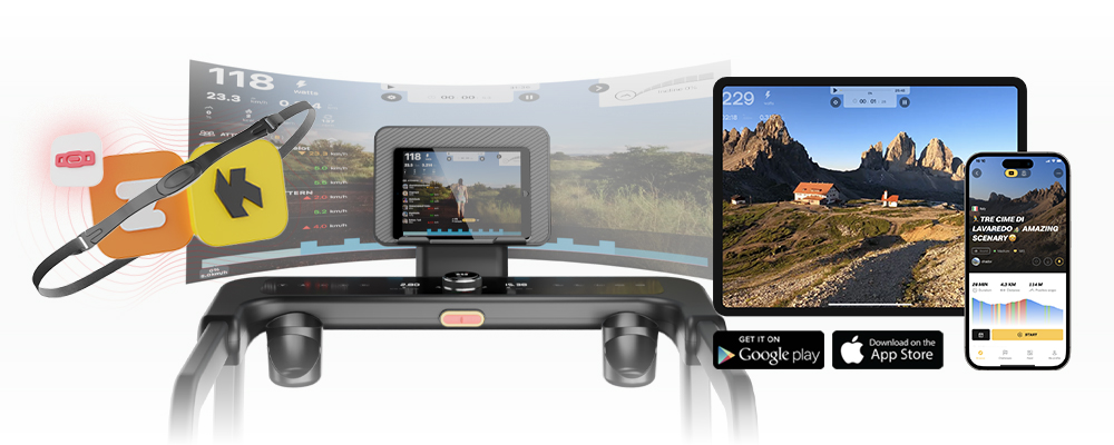 Using Bluetooth, this inSPORTline treadmill can be synced with smart training apps (Kinomap and Zwift), allowing you to set goals and create training plans, run a virtual race or run along preset trails (w/ video), and follow your data in the app. The treadmill, of course, features tablet and water bottle holders, thus allowing you to watch training videos and stay hydrated during the workout.