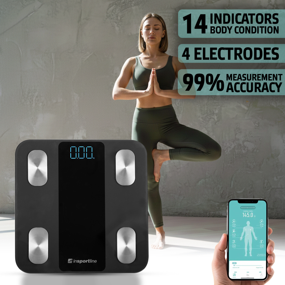 The Smart Scale inSPORTline Syncale 20 is a stylish smart scale with a clear LED display that provides both basic and advanced body composition analysis in an elegant, minimalist design. Thanks to its clean tempered glass surface and stainless-steel electrodes, it fits perfectly into any home.