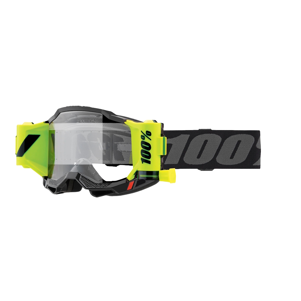 The Motocross Goggles 100% Strata 2 Forecast are designed for the wildest, most demanding, and muddiest motocross conditions. This is a complete system made up of carefully engineered components that work together smoothly and flawlessly, resulting in a naturally functional roll-off film system with mechanical advance directly on the goggles—helping you effectively remove mud and dirt from the lens.